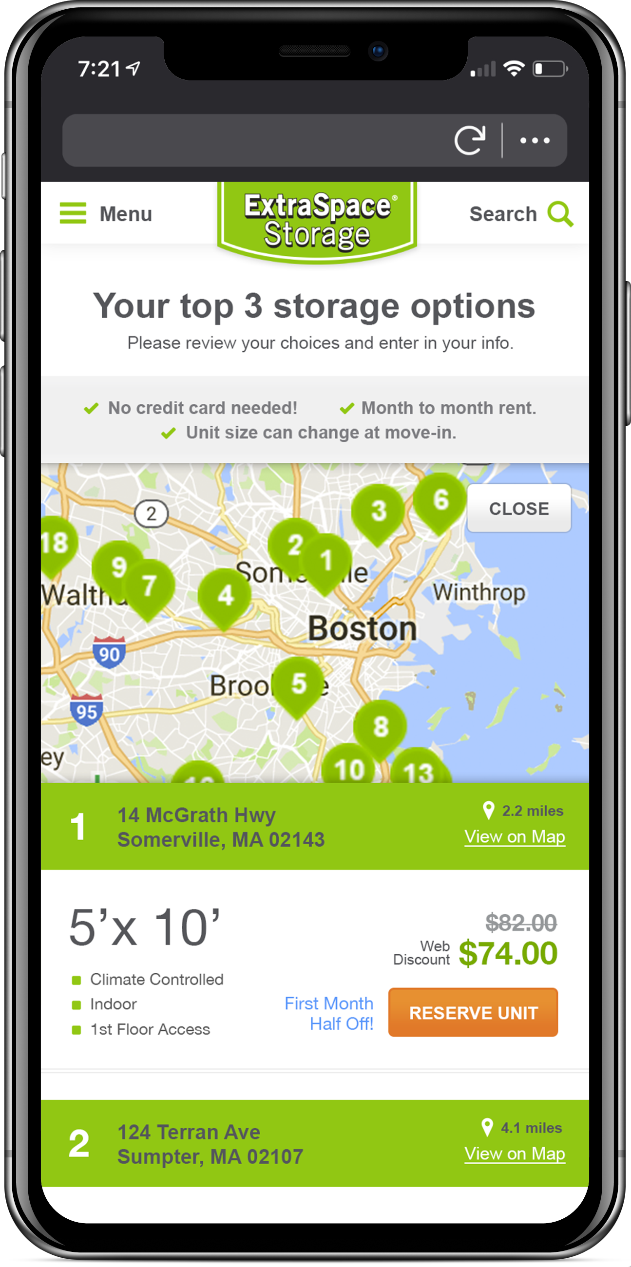 Extra Space Storage learned early on that—when it comes to booking storage units online—it's all about time. They discovered that the more time visitors spend looking for a storage unit, the less likely they are to actually book one. This led Extra Space Storage to shorten everything. From attempting to create the most efficient rental path possible to decreasing page loading times to milliseconds.
